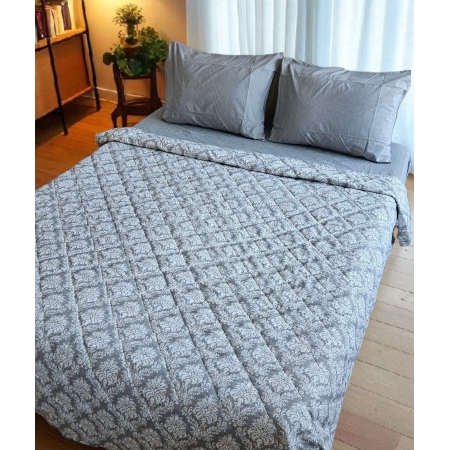 Eva Çift Kişilik Kapitoneli Pike / Yatak Örtüsü Damask Gri
