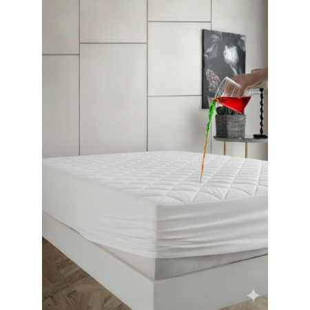 Çift Kişilik Kapitoneli Sıvı Geçirmez Yatak Koruyucu Alez Beyaz