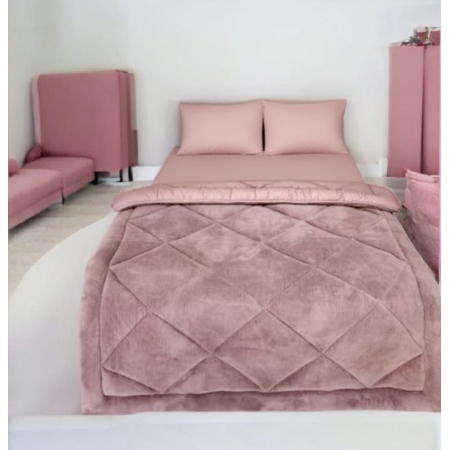 Çift Kişilik Çift Yönlü Welsoft Uyku Seti Pudra