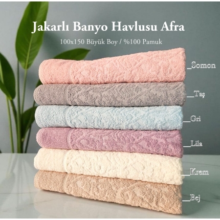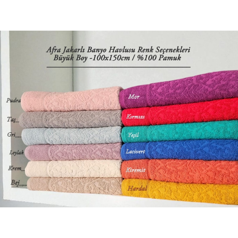 Jakarlı Banyo Havlusu Afra 100x150cm Büyük Boy 2 Adet. Renk seçilebilir.