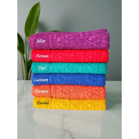 Gövdesi kendinden desenlidir. %100 Pamuk İpliğinden üretilmiş özel tasarım kaliteli banyo havlularıdır.